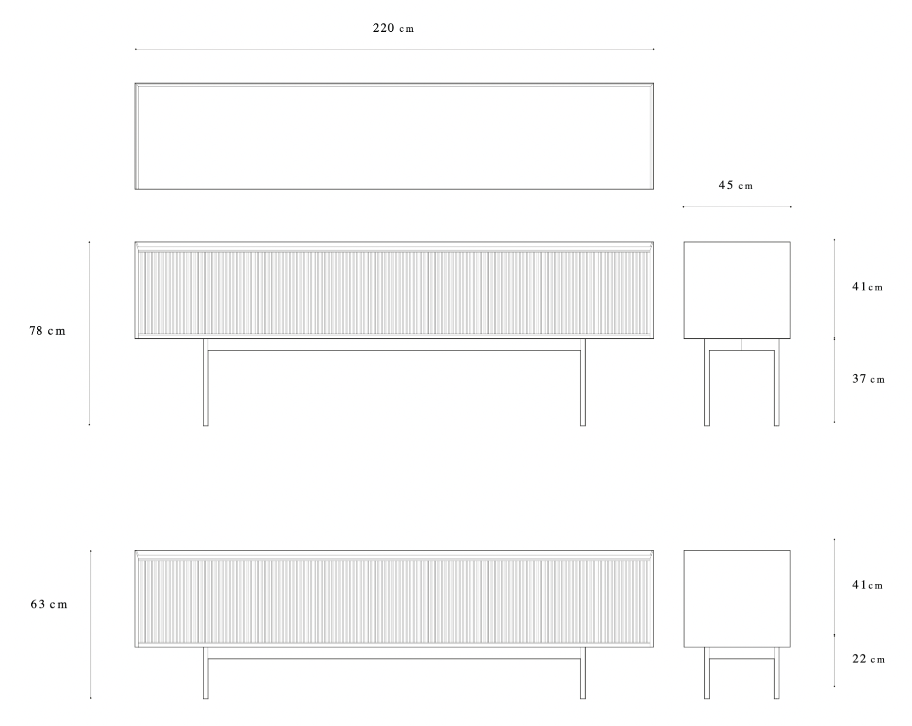 Sipario Three-Doors Handcrafted Sideboard | Dimensions: Height 78 cm