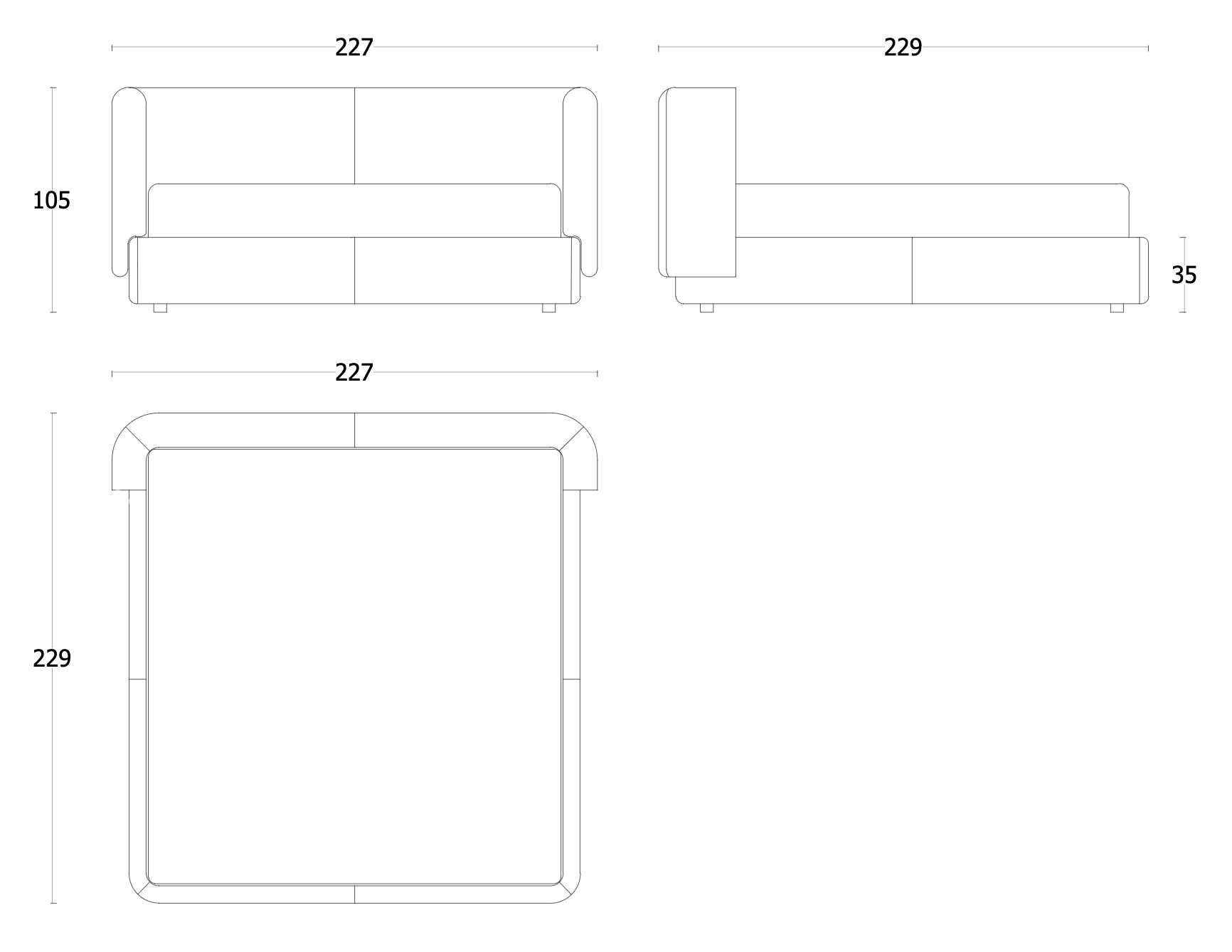 W 227 × D 229 × H 105