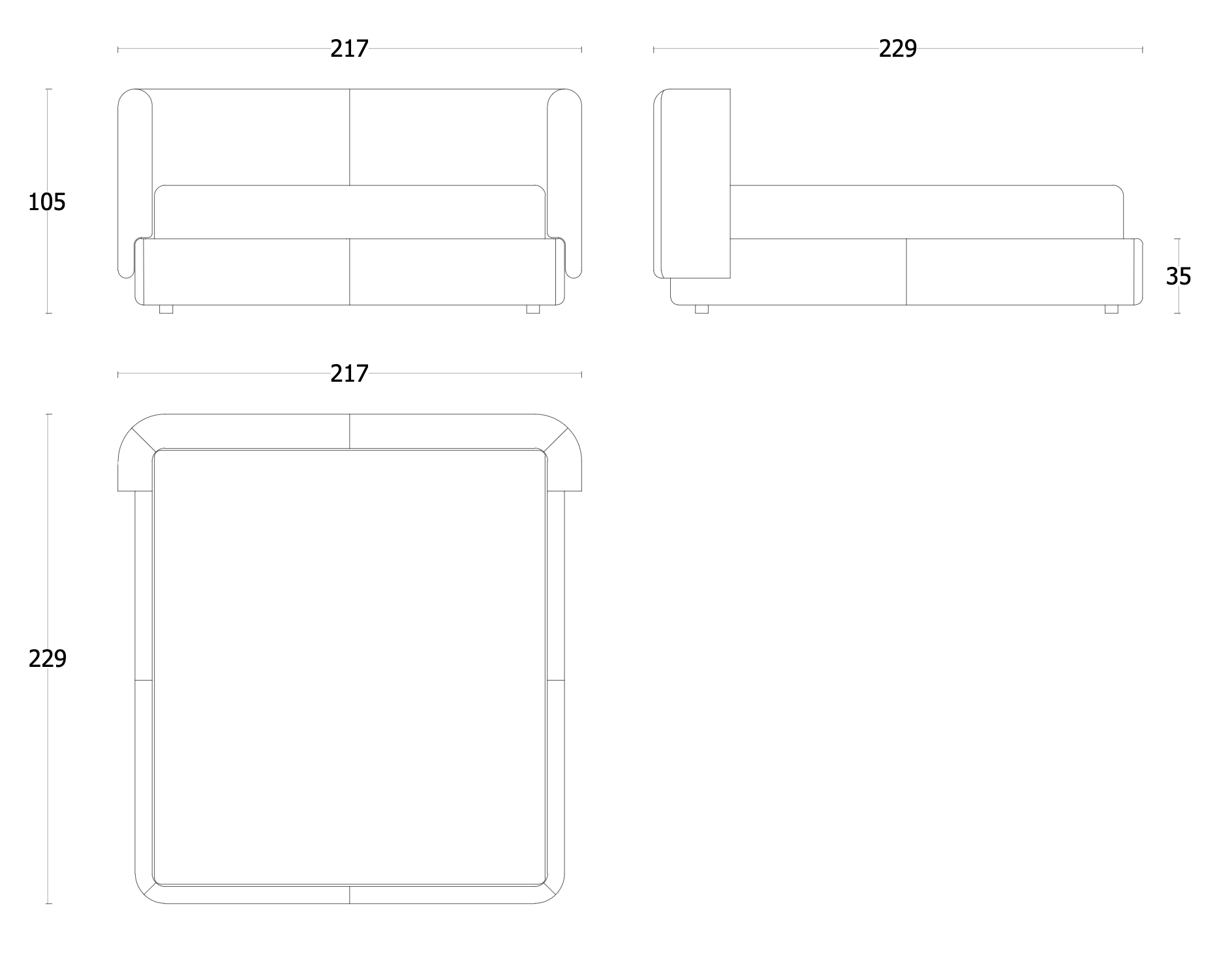 W 217 × D 229 × H 105